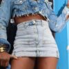 Casual Cute Rhinestone Denim Shorts